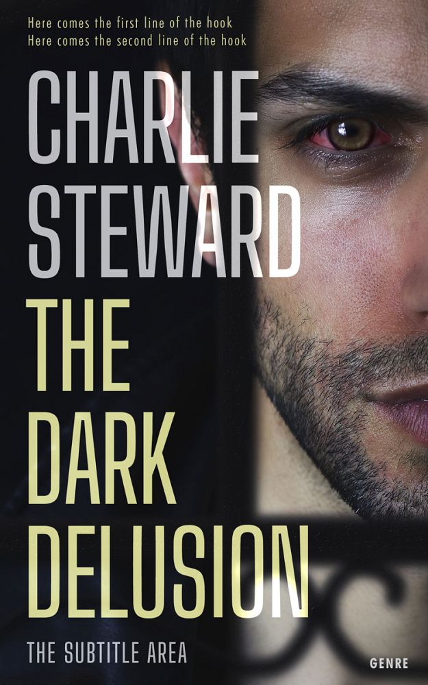 This book cover has 3 lines for the title, 1 line for the subtitle, 2 lines for the author, 2 lines for the hook, and finally 1 line for the genre.