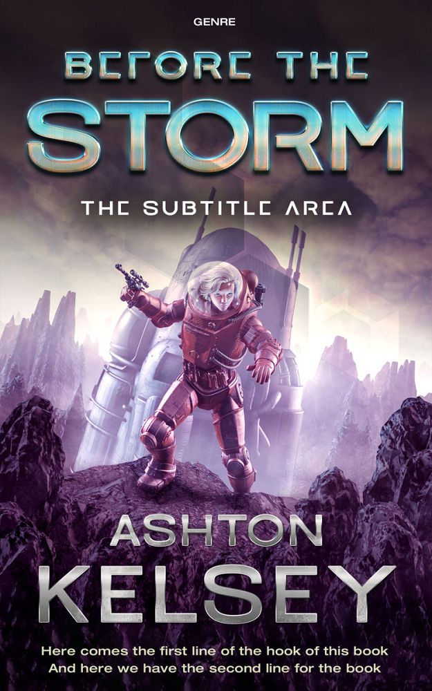 This book cover has 2 lines for the title, 1 line for the subtitle, 2 lines for the author, 2 lines for the hook, and finally 1 line for the genre.