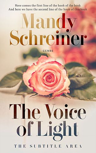 This book cover has 2 lines for the title, 1 line for the subtitle, 2 lines for the author, 2 lines for the hook, and finally 1 line for the genre.