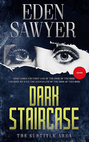 This book cover has 2 lines for the title, 1 line for the subtitle, 2 lines for the author, 2 lines for the hook, and finally 1 line for the genre.