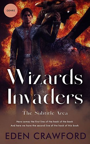 This book cover has 2 lines for the title, 1 line for the subtitle, 1 line for the author, 2 lines for the hook, and finally 1 line for the genre.