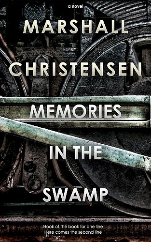 This book cover has 3 lines for the title, 2 lines for the author, 2 lines for the hook, and finally 1 line for the genre.