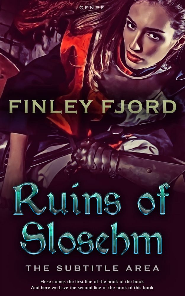 This book cover has 2 lines for the title, 1 line for the subtitle, 1 line for the author, 2 lines for the hook, and finally 1 line for the genre.