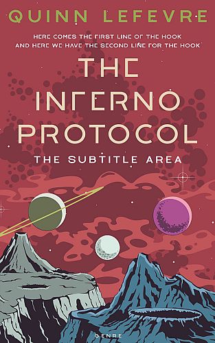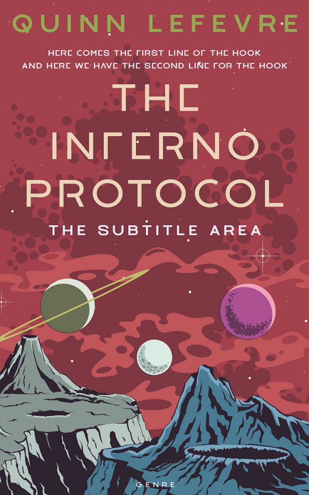 This book cover has 3 lines for the title, 1 line for the subtitle, 1 line for the author, 2 lines for the hook, and finally 1 line for the genre.