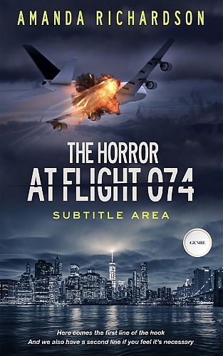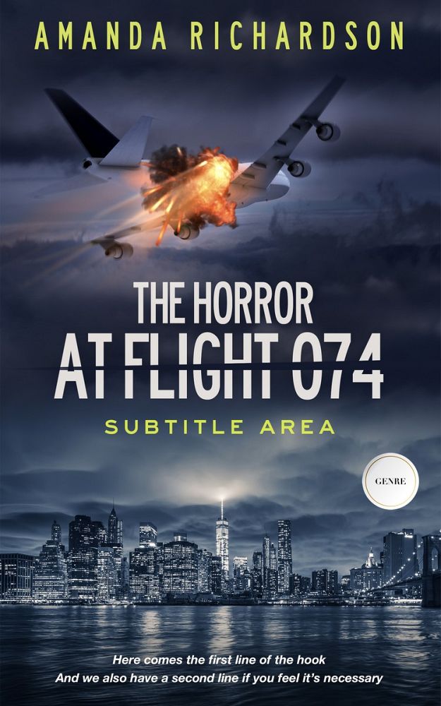 This book cover has 2 lines for the title, 1 line for the subtitle, 1 line for the author, 2 lines for the hook, and finally 1 line for the genre.