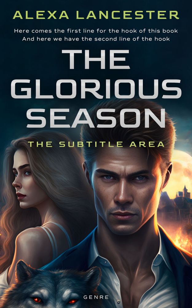 This book cover has 3 lines for the title, 1 line for the subtitle, 1 line for the author, 2 lines for the hook, and finally 1 line for the genre.