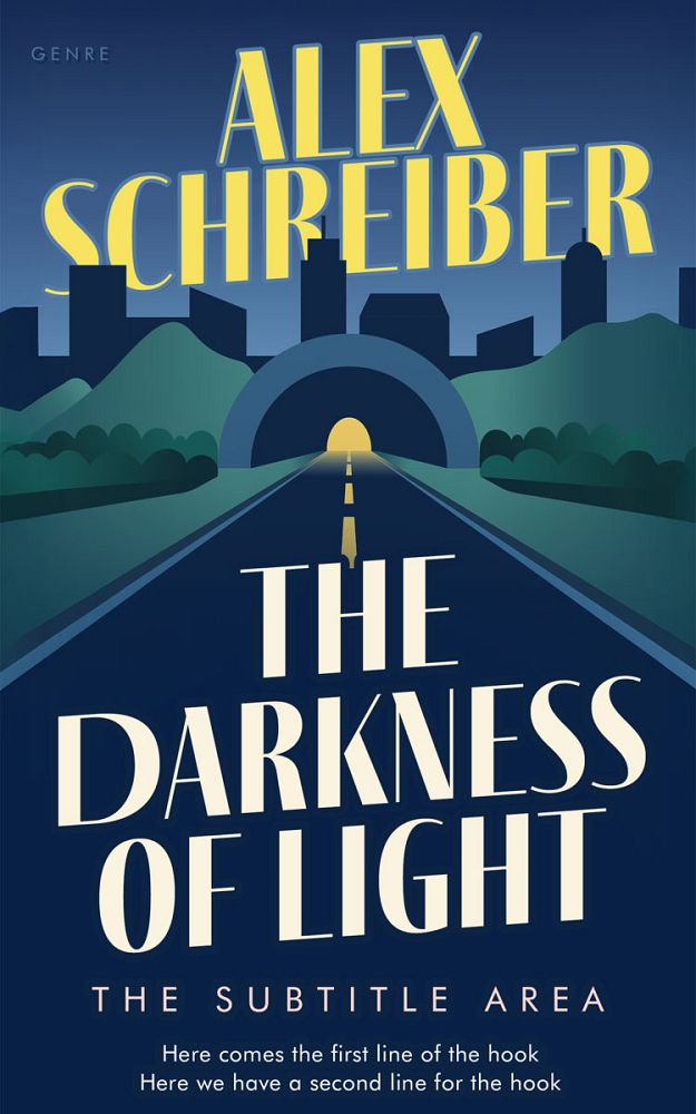 This book cover has 3 lines for the title, 1 line for the subtitle, 2 lines for the author, 2 lines for the hook, and finally 1 line for the genre.