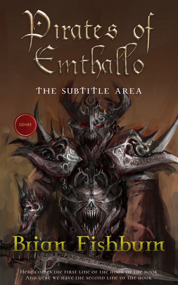 This book cover has 2 lines for the title, 1 line for the subtitle, 1 line for the author, 2 lines for the hook, and finally 1 line for the genre.