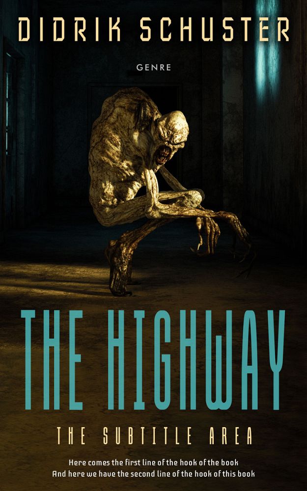 This book cover has 1 line for the title, 1 line for the subtitle, 1 line for the author, 2 lines for the hook, and finally 1 line for the genre.