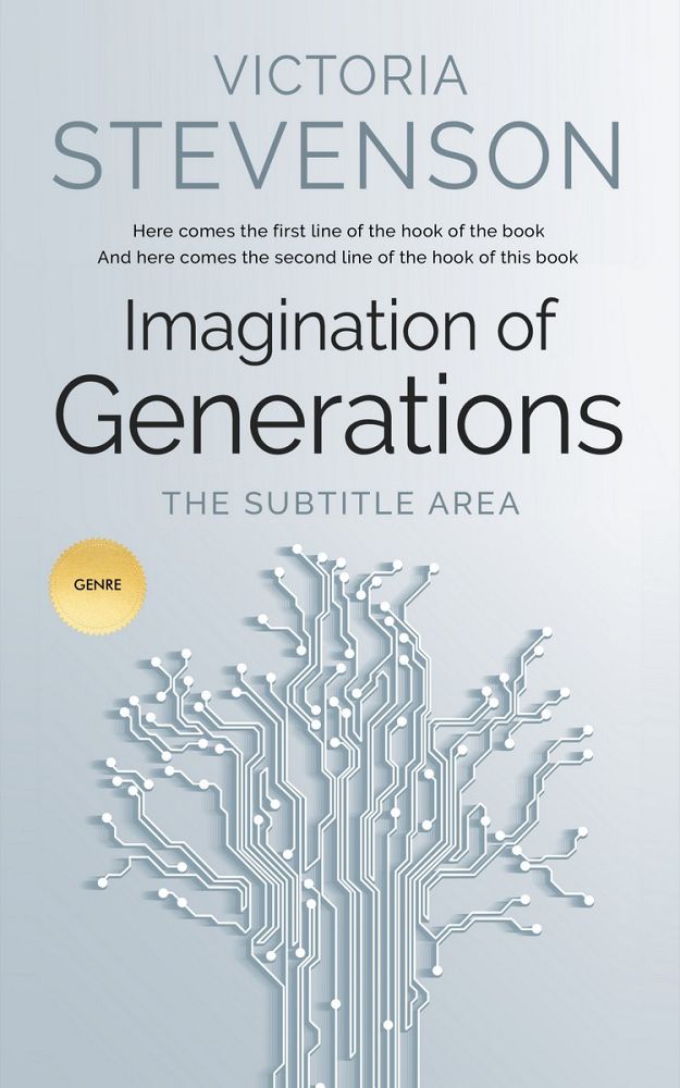 This book cover has 2 lines for the title, 1 line for the subtitle, 2 lines for the author, 2 lines for the hook, and finally 1 line for the genre.