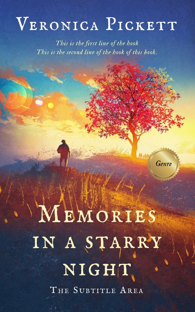 This book cover has 3 lines for the title, 1 line for the subtitle, 1 line for the author, 2 lines for the hook, and finally 1 line for the genre.