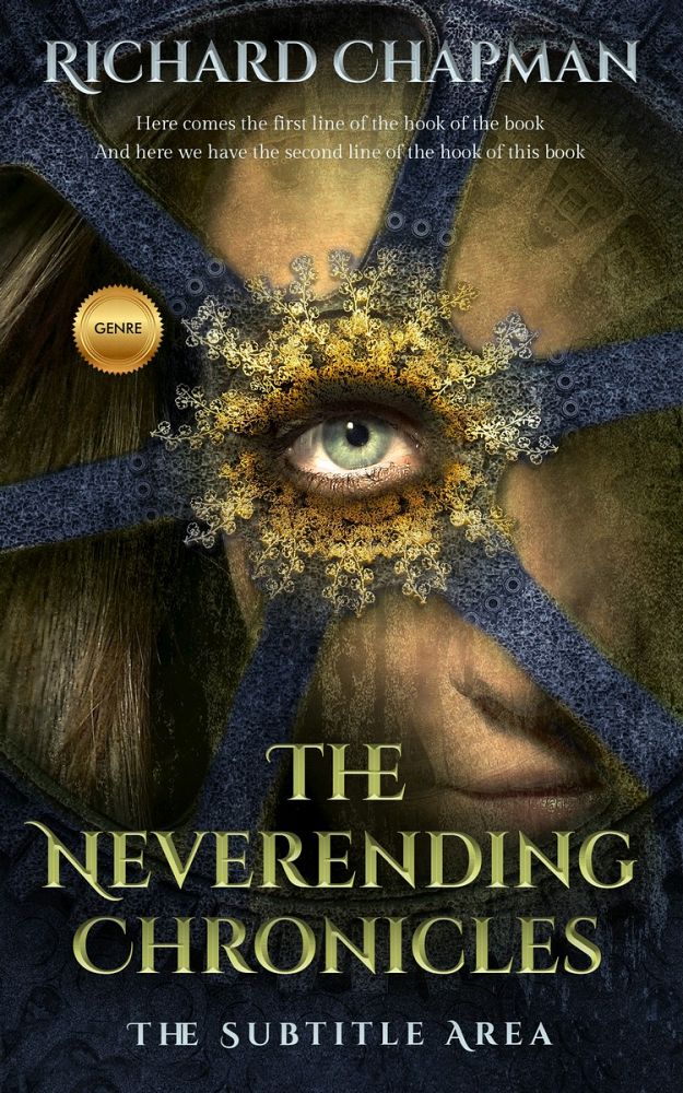 This book cover has 3 lines for the title, 1 line for the subtitle, 1 line for the author, 2 lines for the hook, and finally 1 line for the genre.