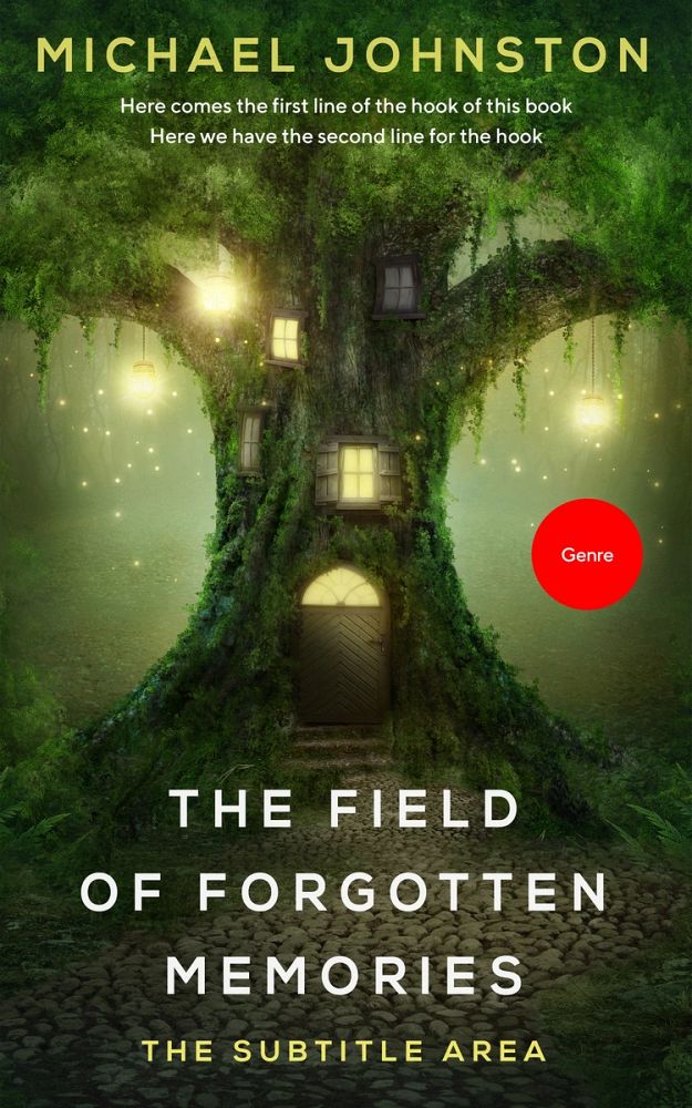 This book cover has 3 lines for the title, 1 line for the subtitle, 1 line for the author, 2 lines for the hook, and finally 1 line for the genre.