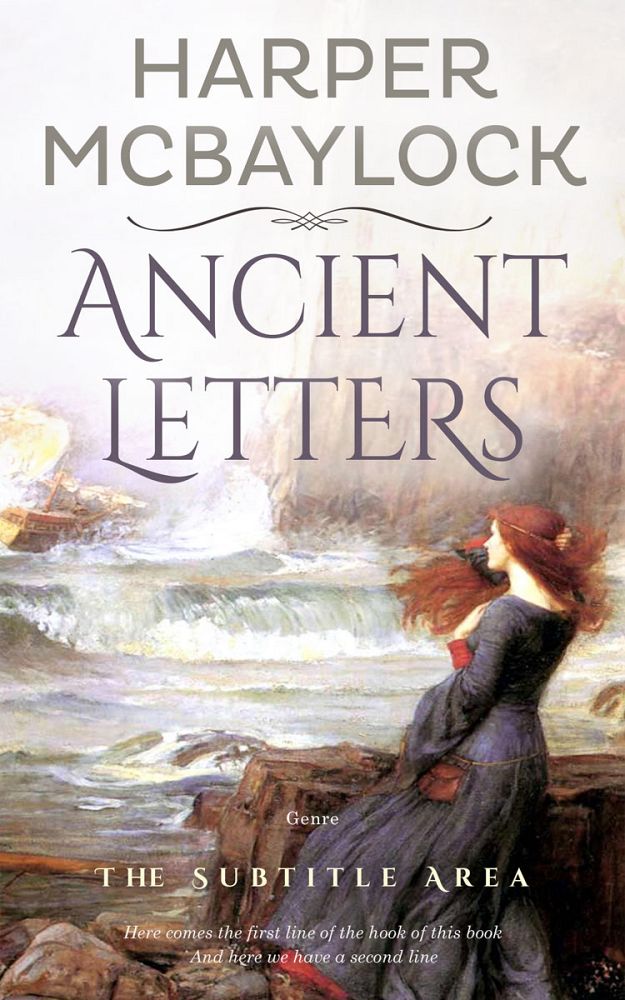 This book cover has 2 lines for the title, 1 line for the subtitle, 2 lines for the author, 2 lines for the hook, and finally 1 line for the genre.