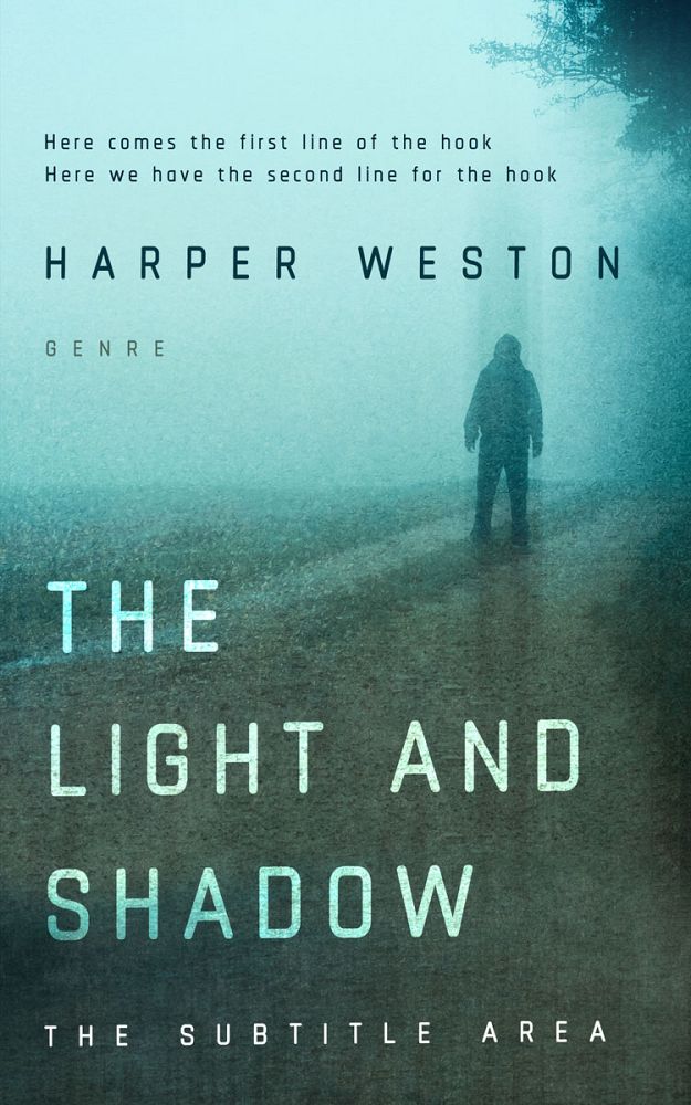 This book cover has 3 lines for the title, 1 line for the subtitle, 1 line for the author, 2 lines for the hook, and finally 1 line for the genre.