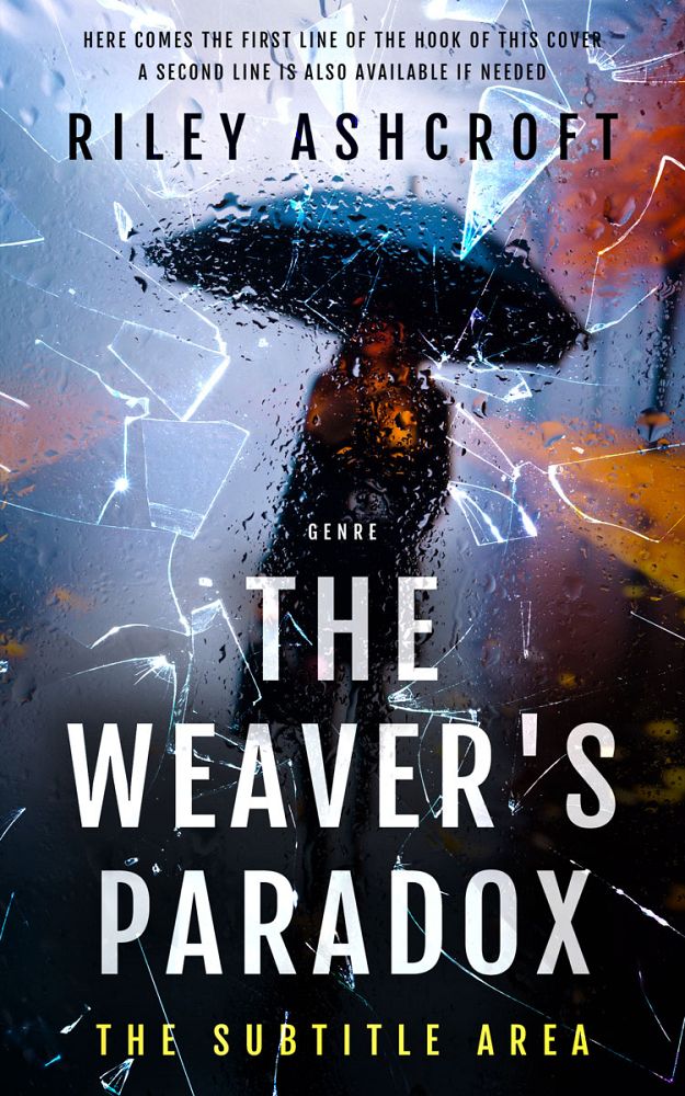 Other keywords revelant to this premade cover are dramatic, reflection, darkness, moody, rain, atmospheric, wet, shadowy, umbrella, stormy, reflective, streetlight, raincoat, broken glass, shards.