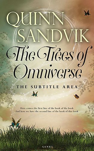 This book cover has 2 lines for the title, 1 line for the subtitle, 2 lines for the author, 2 lines for the hook, and finally 1 line for the genre.