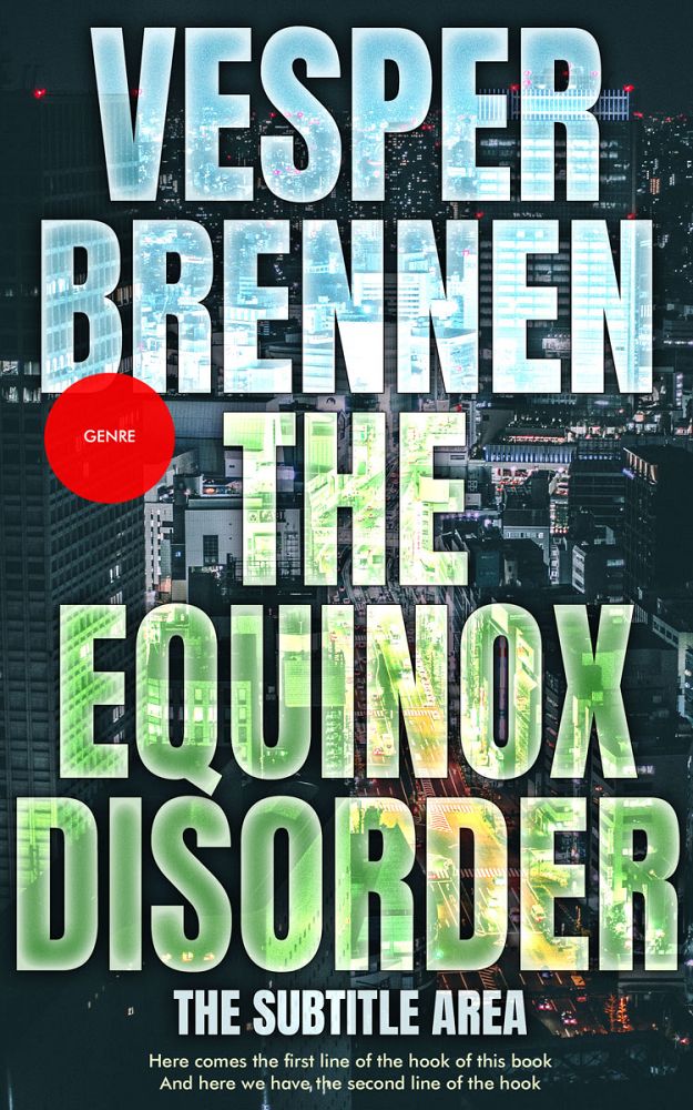 This book cover has 3 lines for the title, 1 line for the subtitle, 2 lines for the author, 2 lines for the hook, and finally 1 line for the genre.