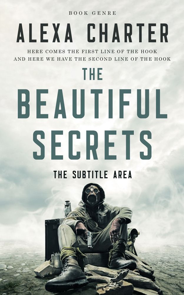 This book cover has 3 lines for the title, 1 line for the subtitle, 1 line for the author, 2 lines for the hook, and finally 1 line for the genre.