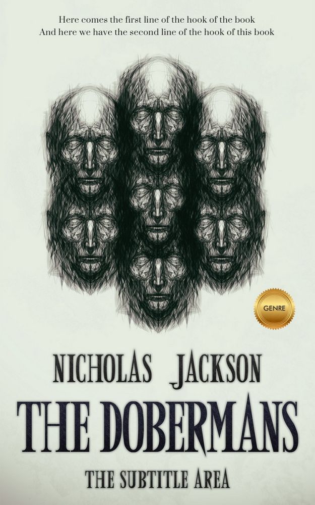 This book cover has 1 line for the title, 1 line for the subtitle, 1 line for the author, 2 lines for the hook, and finally 1 line for the genre.