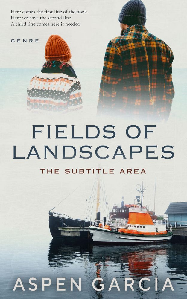 This book cover has 2 lines for the title, 1 line for the subtitle, 1 line for the author, 3 lines for the hook, and finally 1 line for the genre.