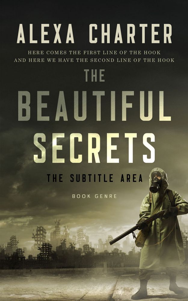 This book cover has 3 lines for the title, 1 line for the subtitle, 1 line for the author, 2 lines for the hook, and finally 1 line for the genre.