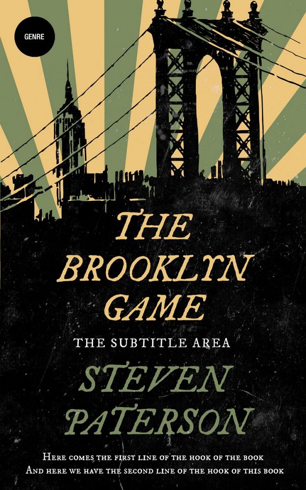 This book cover has 3 lines for the title, 1 line for the subtitle, 2 lines for the author, 2 lines for the hook, and finally 1 line for the genre.
