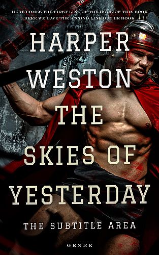 This book cover has 3 lines for the title, 1 line for the subtitle, 2 lines for the author, 2 lines for the hook, and finally 1 line for the genre.