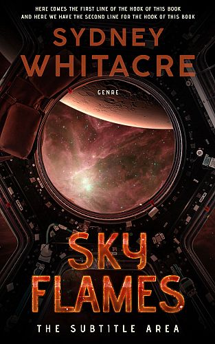 This book cover has 2 lines for the title, 1 line for the subtitle, 2 lines for the author, 2 lines for the hook, and finally 1 line for the genre.