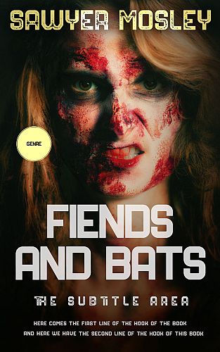 This book cover has 2 lines for the title, 1 line for the subtitle, 1 line for the author, 2 lines for the hook, and finally 1 line for the genre.