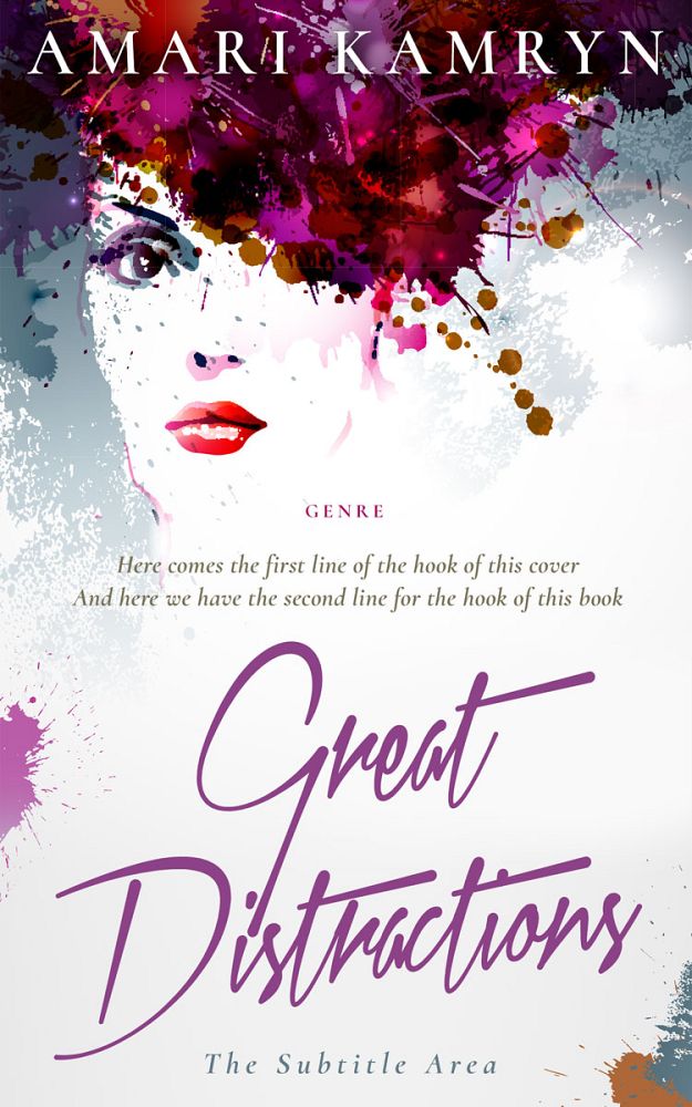 This book cover has 2 lines for the title, 1 line for the subtitle, 1 line for the author, 2 lines for the hook, and finally 1 line for the genre.