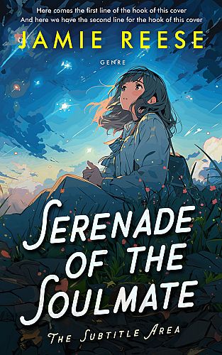 This book cover has 3 lines for the title, 1 line for the subtitle, 1 line for the author, 2 lines for the hook, and finally 1 line for the genre.