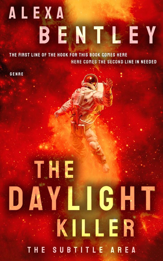 This book cover has 3 lines for the title, 1 line for the subtitle, 2 lines for the author, 2 lines for the hook, and finally 1 line for the genre.